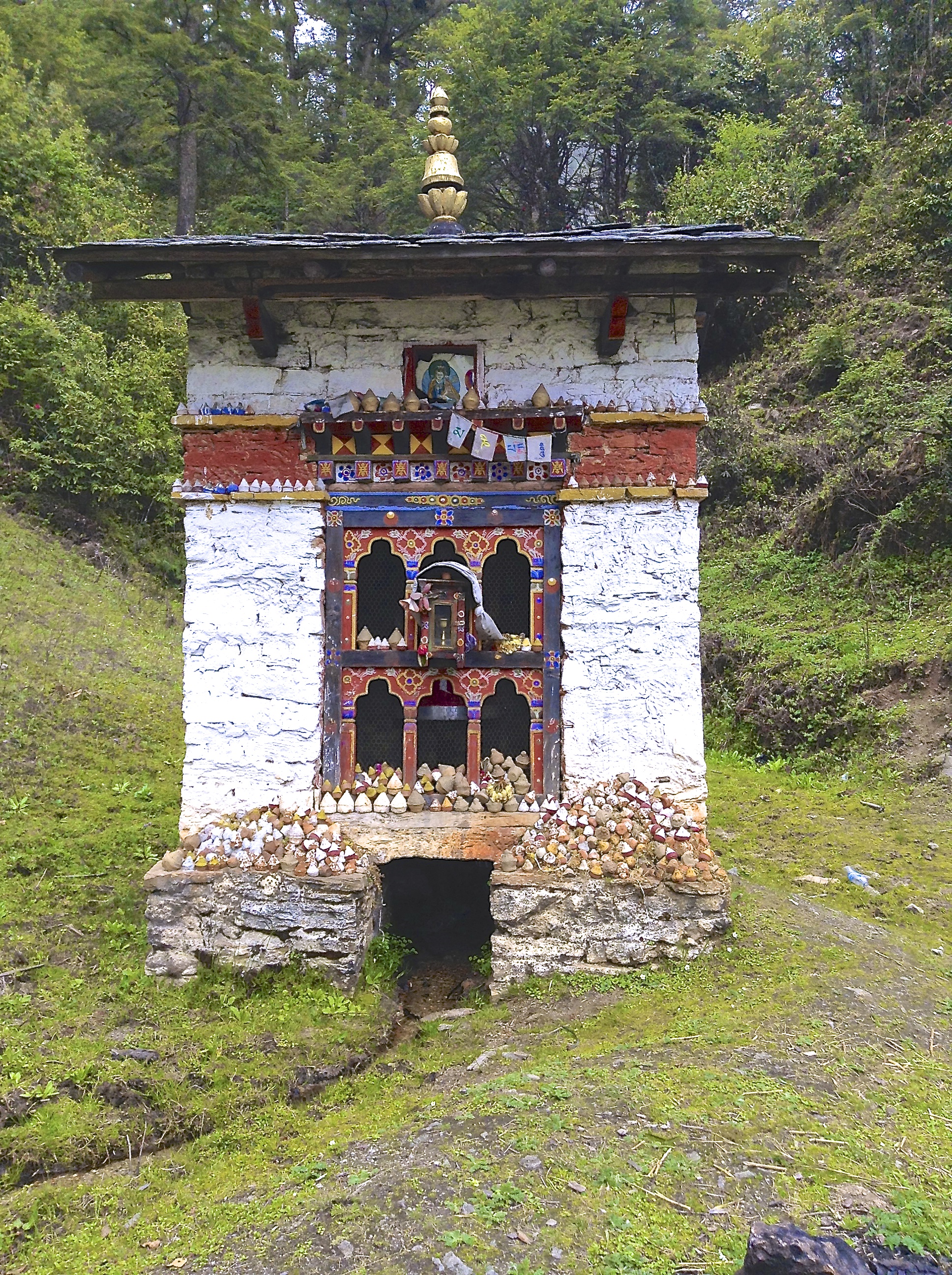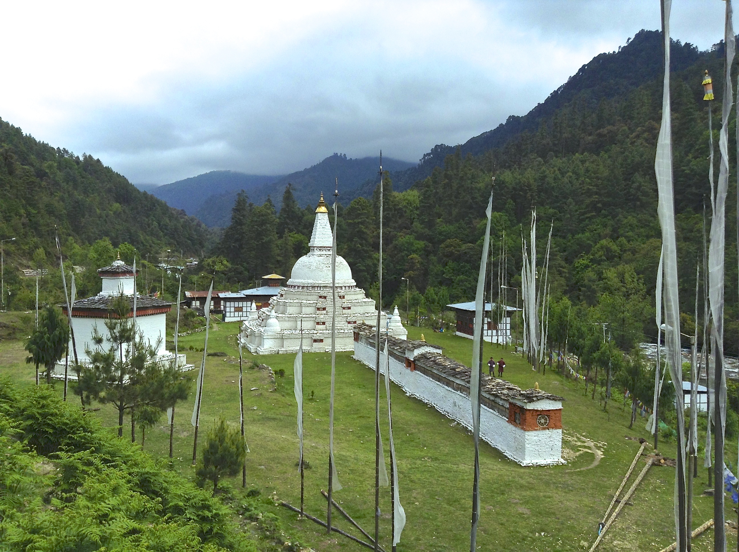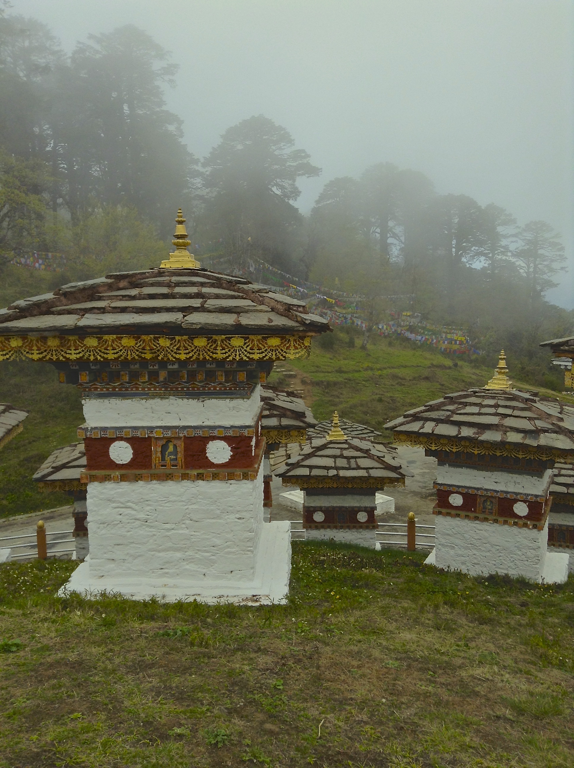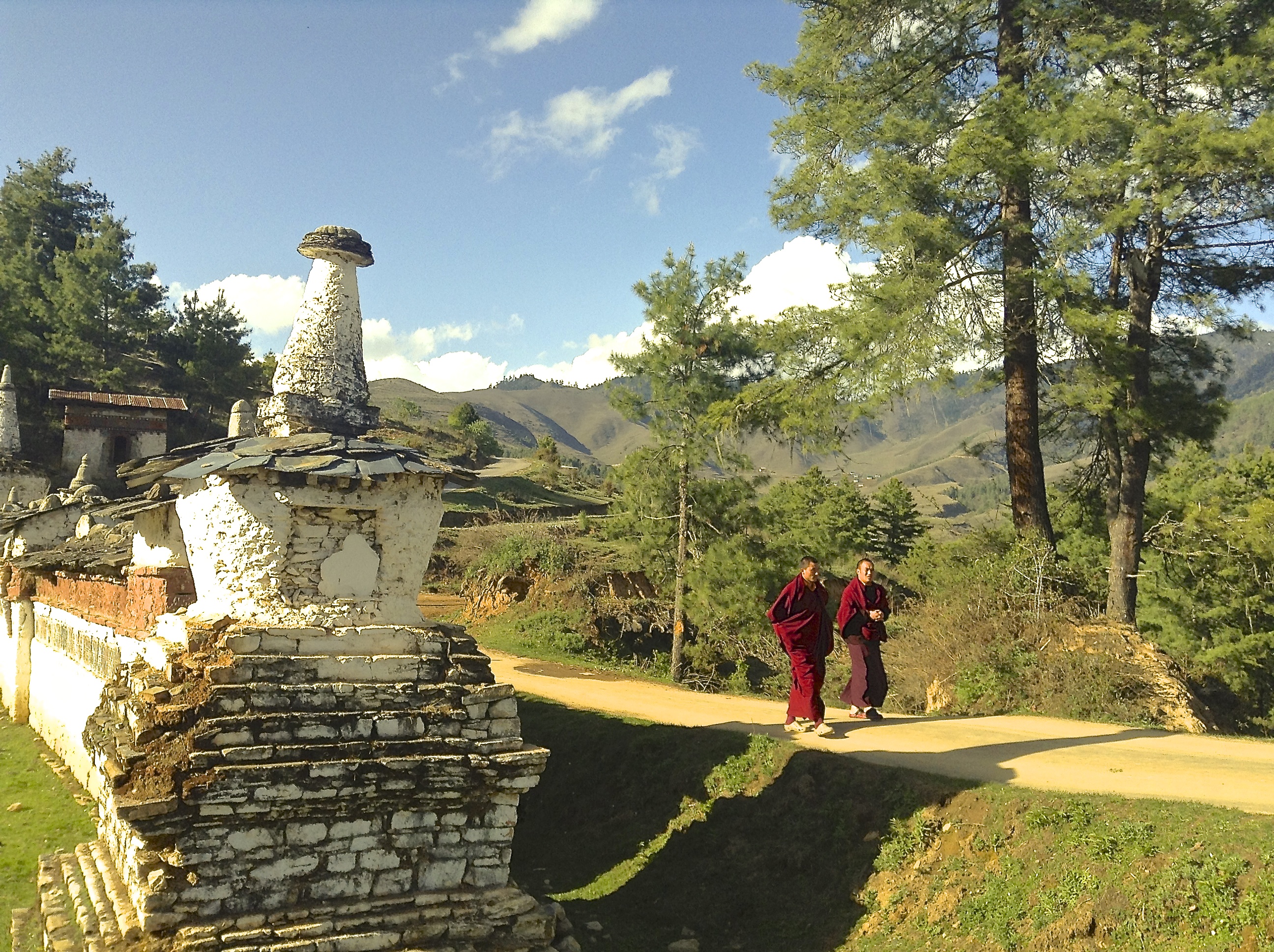 The Chorten, more commonly known as Stupa, are sacred structures containing consecrated items or sacred relics, such as written mantras, hair or pieces of clothing. In white conical shape, surrounded by colorful prayer’s flags, they dot the country landscape.
