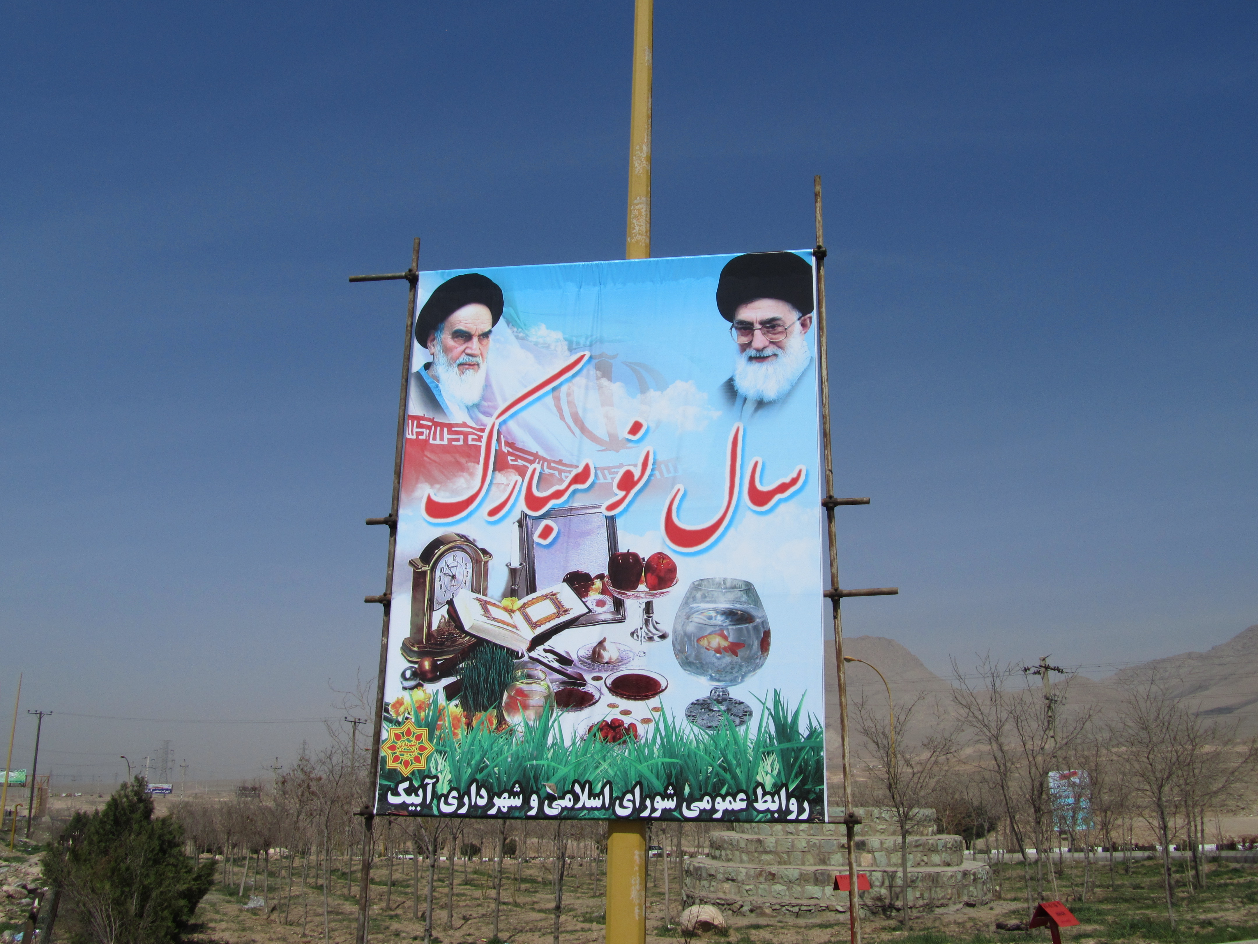 It was the week after Norooz when we arrived in Tehran. You could still see the signs of the festivity: tables set with the symbols of their feast: specific symbolic items seven of which have names starting with the Farsi letter S (seen) And posters around the streets with Happy Norooz wishes to the population from their Spiritual Leaders and the President.