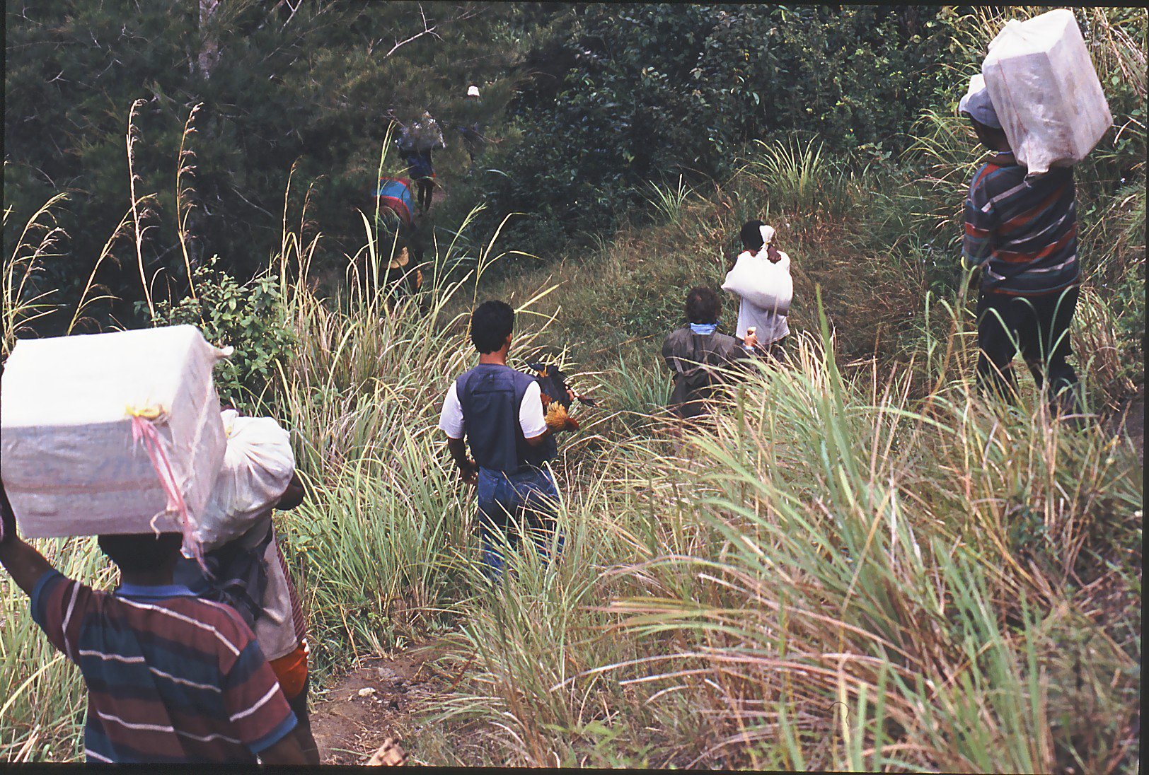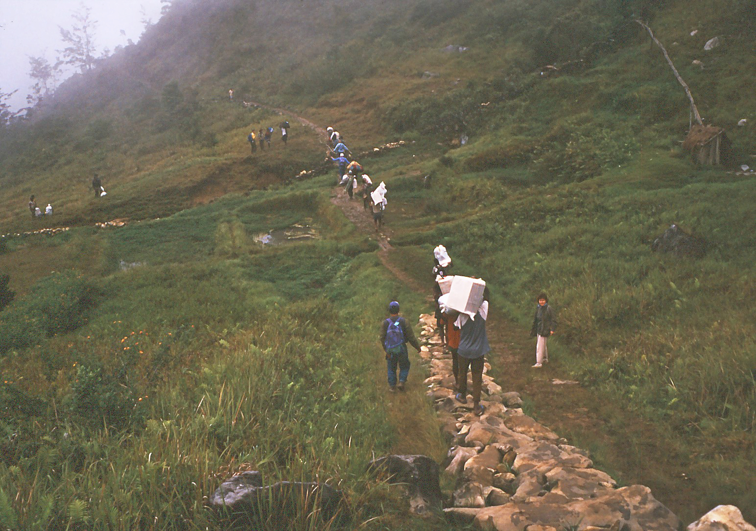 To fully explore these lands and these peoples we move only on foot, helped by 17 local porters, a trekking extremely tiring, days of walking from village to village, crossing valleys and mountains, rivers and forests.