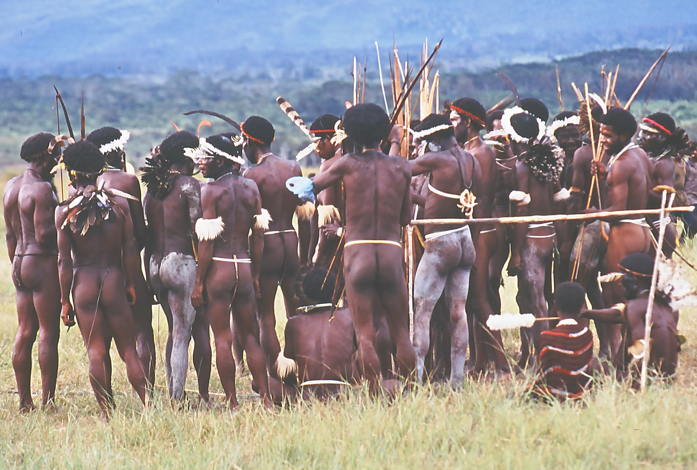 The Dani people look rather primitive as they are wearing almost nothing except for some decorations on the body.
